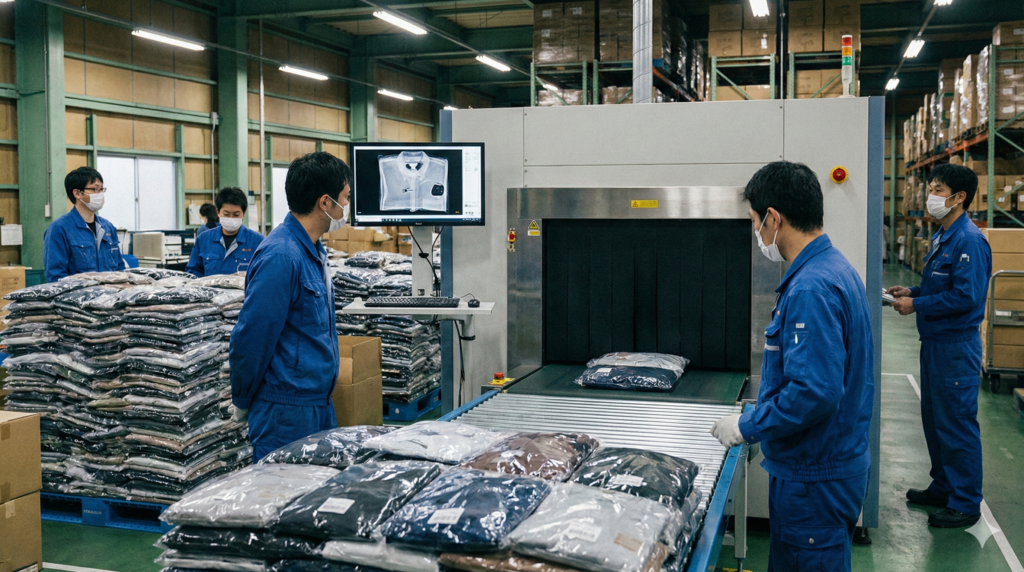 02 X線検査で内部不良を検知(衣料ウェア約6万枚)