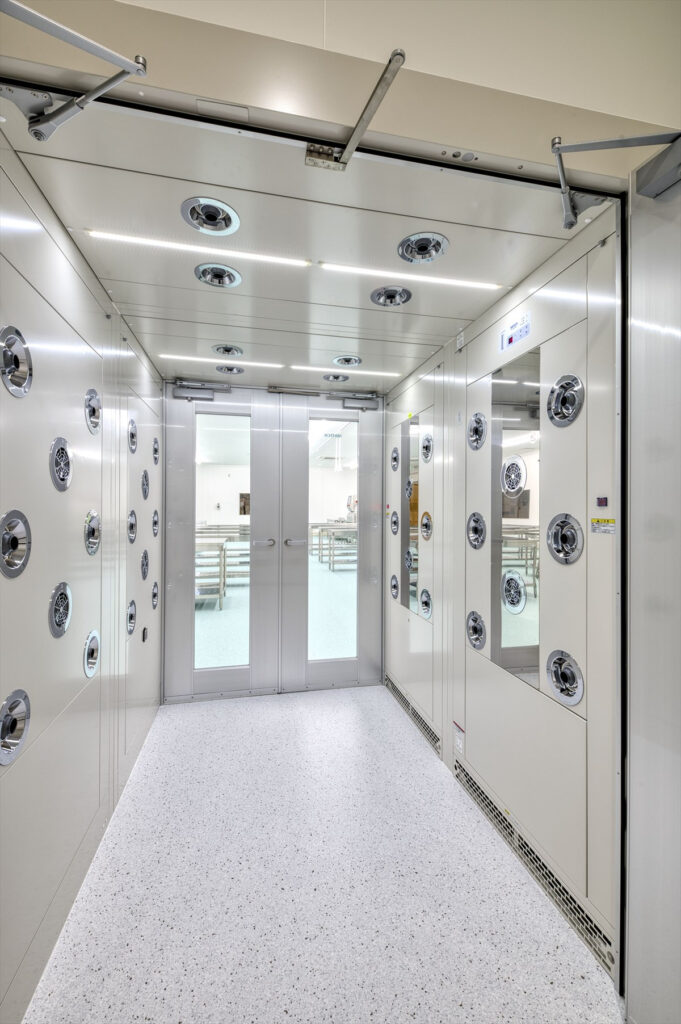 加工エリアにはエアシャワーを完備し、入室時の塵埃や異物の持ち込みを抑制。