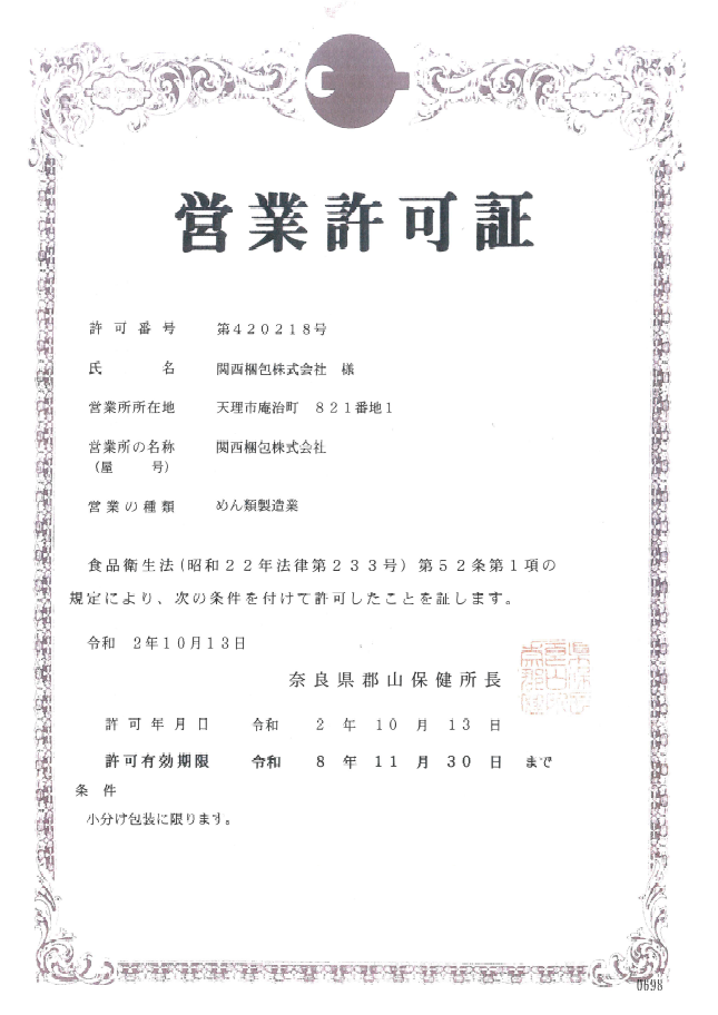 めん類製造業許可