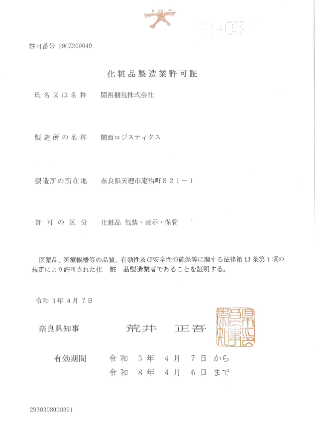 化粧品製造業(包装・表示・保管)許可