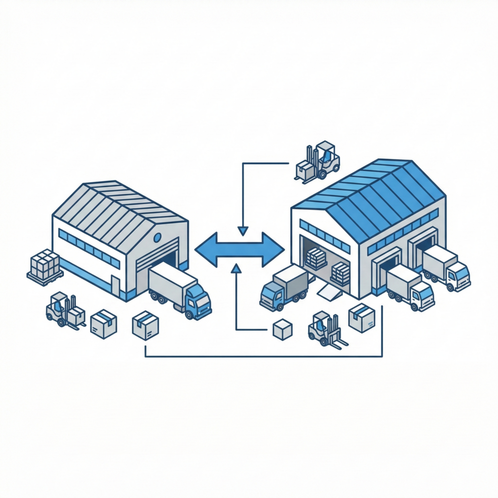 本社+ロジスティクスセンターの倉庫体制